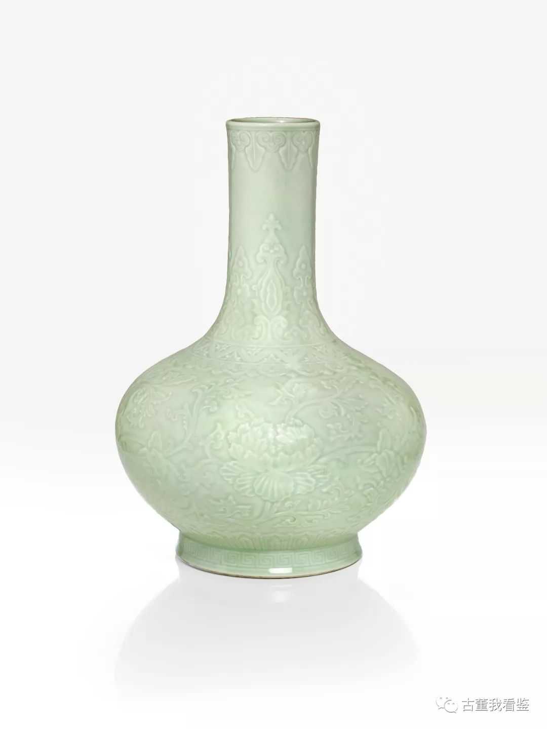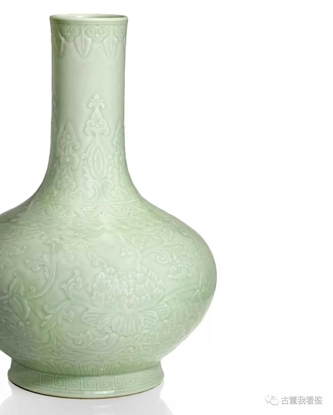 清乾隆冬青釉刻纏枝牡丹紋瓶六字篆書印款