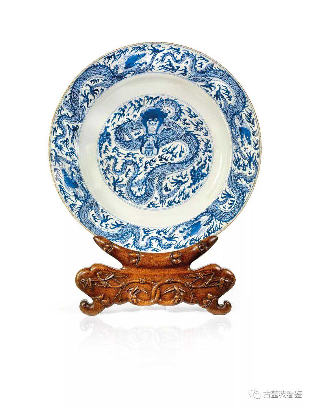 清顺治青花芭蕉麒麟图大盘