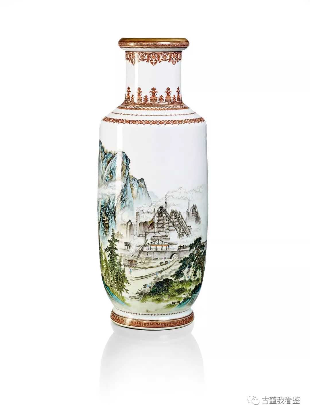 二十世紀粉彩新中國建設圖瓷瓶礬紅「中國景德鎮制D」款