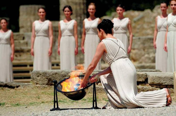 通过凹面镜聚光采集奥运圣火
