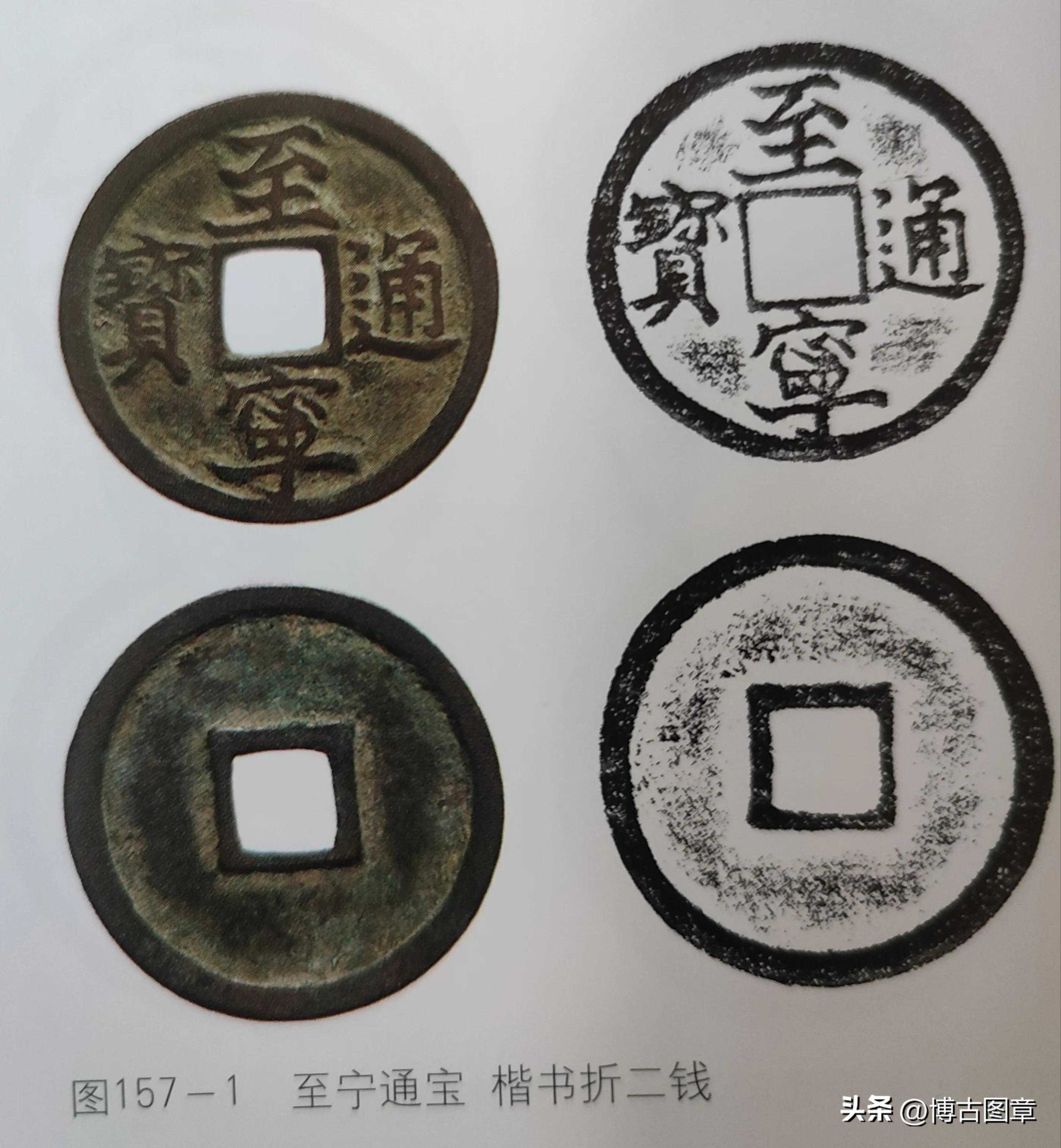 而至宁元宝也一样,现在故宫出版书上出了一批,出土地点明确,彩照和拓稿清晰。除折五型大钱二个版式,还有小平钱。不信请看: