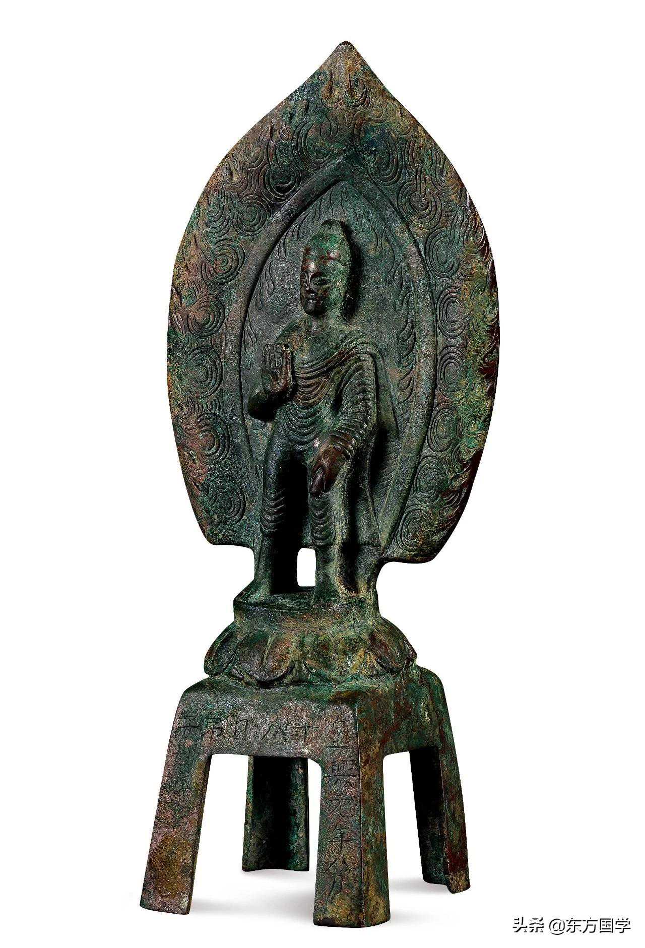 另一尊造像通体鎏金,包浆浑厚,容貌庄严,鼻梁通眉高隆,双目细长,薄唇阔肩,脸部浮现悲悯笑意,神态安详,体现一种舒缓与平和,流露出法喜之情,身躯修长,比例优美,悬裳衣纹飘逸生动,虽无纪年,然一见可知为正光年间(520年7月—525年6月是北魏的君主魏孝明帝元诩的第三个年号)标准造像。