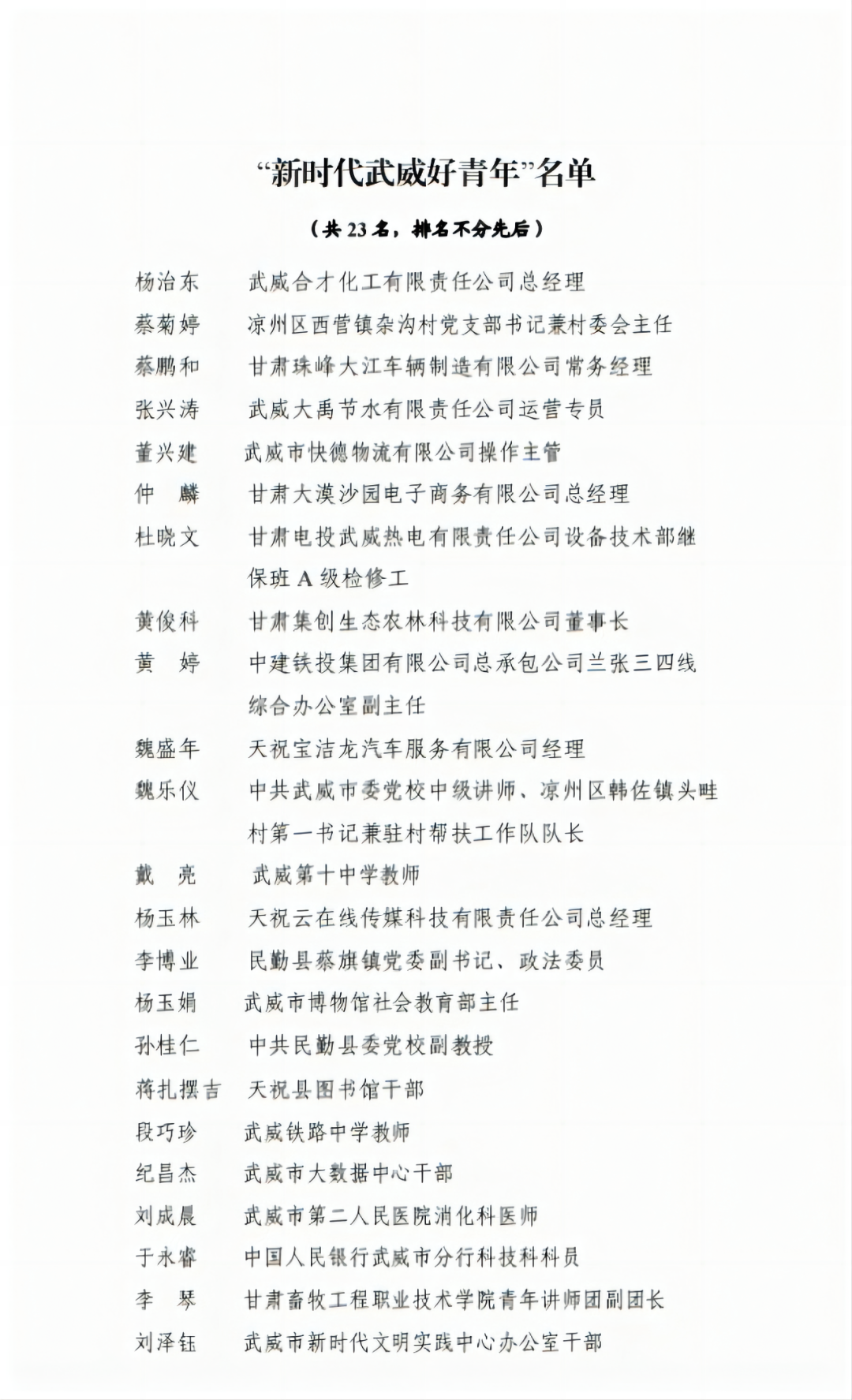 关于“武威青年五四奖章”“新时代武威好青年”“武威市两红两优”拟通报表扬对象的公示