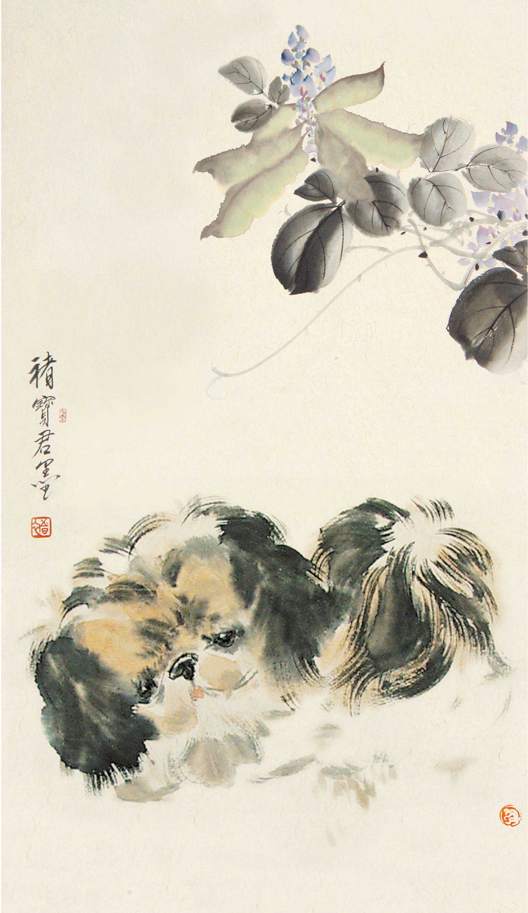 在褚宝君的作品中,他去匠气留匠心,追求“清水出芙蓉,天然去雕饰”的至高境界。在笔法上,少有外型的勾勒,多采用的是没骨画法,这相对于先勾勒后着色的写意画来讲,更有了许多难度,需要笔笔到位、处处兼顾。他用没骨画法将边缘线隐去,让花鸟画的神韵更加自由,一定程度上增加了描绘对象的真实感。