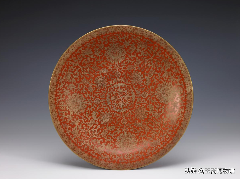红地描金万年寿字缠枝莲纹盘北京故宫博物院藏