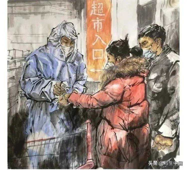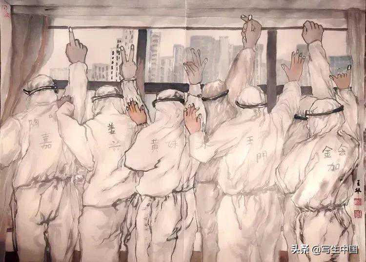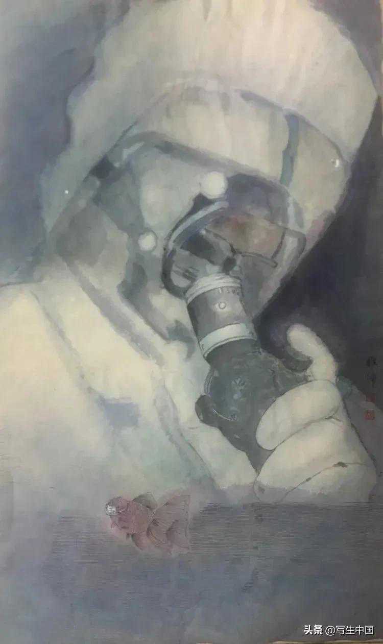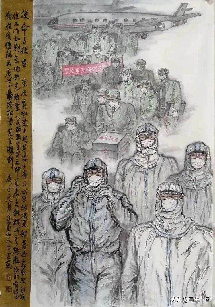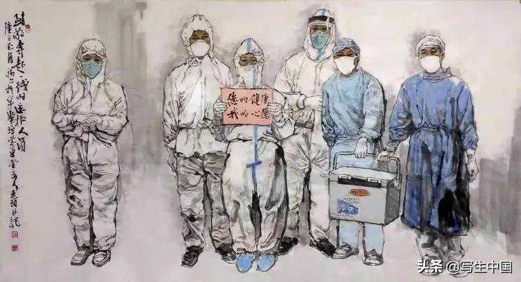 《抗疫逆行者》中国画文麒