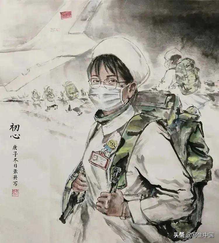 《拿画笔的抗疫战士》中国画蒋洪亮