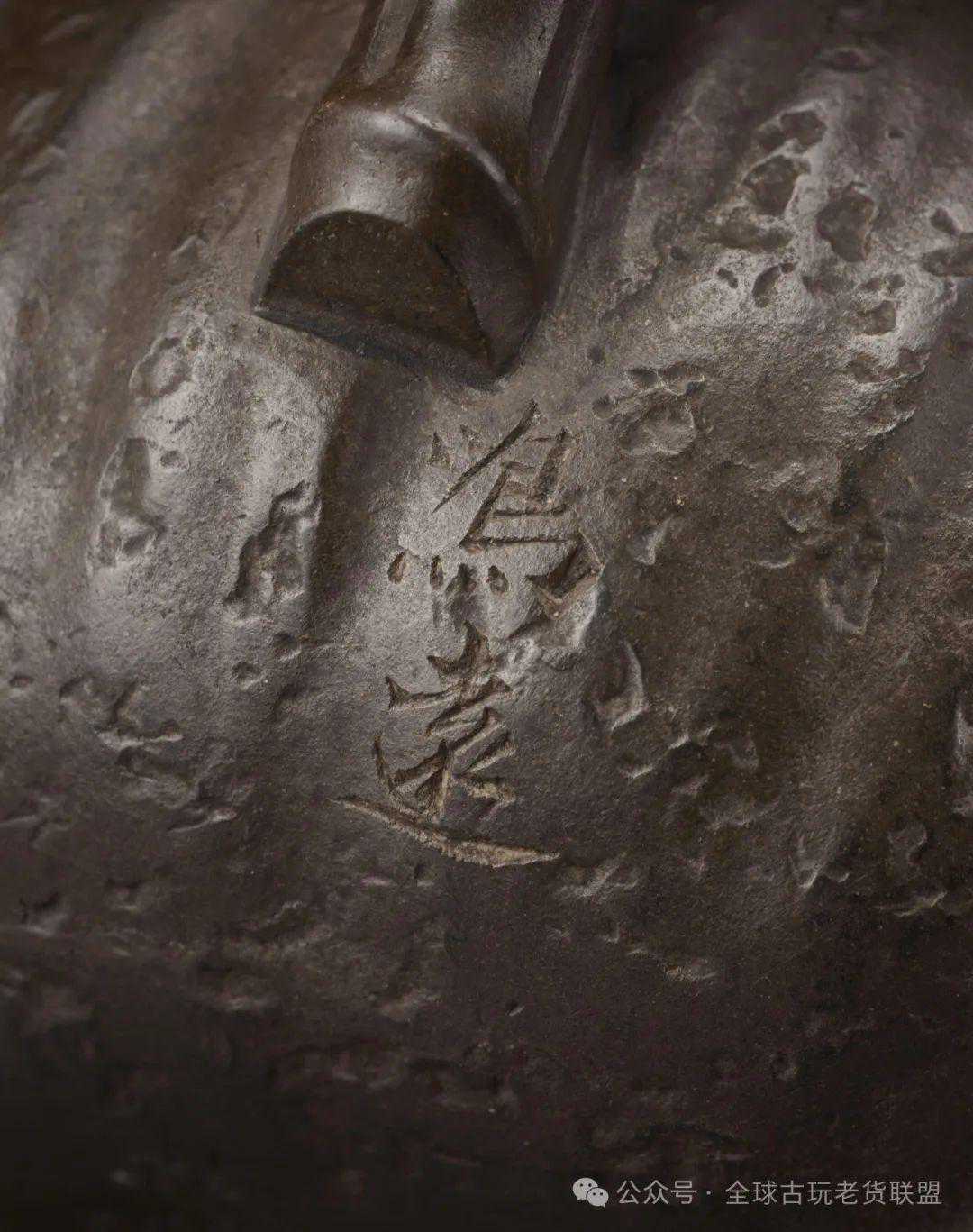 字,为族氏金文。宝鸡凤翔县先周墓曾出土有鼎族分裆鬲鼎,斗鸡台也曾出土一大一小两鼎卣,可见鼎族的居住范围位于宝鸡一带。本件器形周正敦厚,铸造工艺精湛,尺寸虽不大然体量厚重,为商代晚期同类之翘楚。