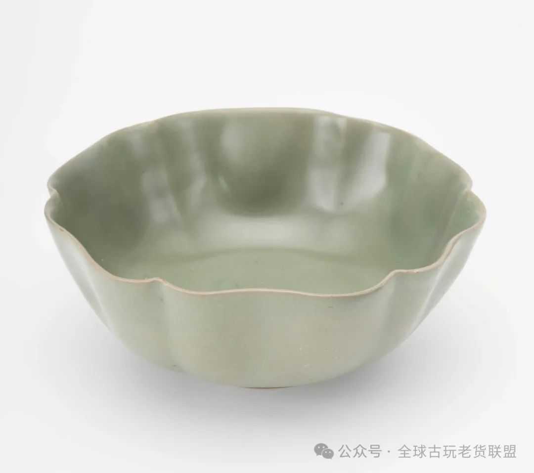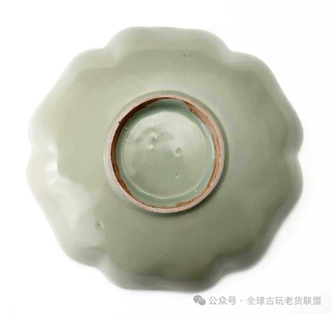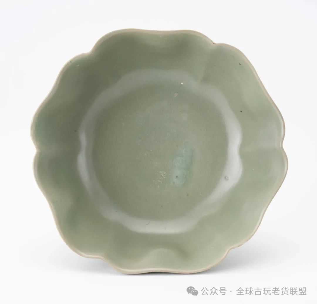 此件平面呈六瓣花式,侈口斜壁浅腹,底承圈足。通体施青釉,圈足修胎规整。临汝窑位于河南省临汝县,已发现严和店、轧花沟、下任村、东沟、陈沟、岗窑、石板河、桃木沟、陈家庄、蜈蚣山等遗址,主要生产民窑青瓷,创烧于晚唐至北宋早期,北宋中期发展成熟,北宋晚期达到鼎盛,金元时期逐渐衰落。北宋末年,部分临汝窑窑址专为皇家烧制瓷器,产品即大名鼎鼎的汝窑器。