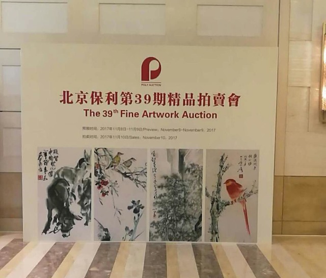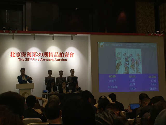 北京保利第39期精品拍卖会于11月10日在北京四季酒店开拍,北香子牡丹四屏作品以58000元人民币成交