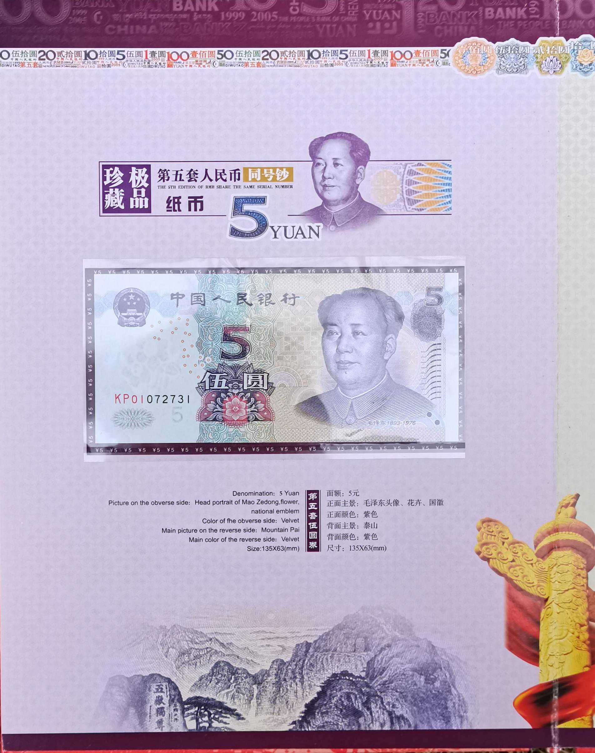一直想要同号钞票收藏,今天通过各种关系才得到一套。全国发行5000套我很幸运能成为其中一员。那么下面我们一起来欣赏一下