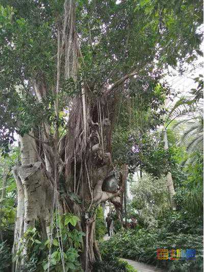 世界花卉大观园建馆时间并不长,只有十余年时间,但是这里的镇馆之宝却已经有数百年历史,原因就是它们是在园区初建时整体移栽来的。镇馆之宝究竟是啥?一是榕树,在南方榕树十分常见,因为其独有的气生根,有独木能成林之美誉,馆内的榕树已经具备一定的规模,让你在北方也能一睹大榕树的风采。二是佛肚树,树干粗大,需两人环抱,已有300余年历史,是当年大树移栽而来。三是重阳木,馆内这株重阳木树龄也已逾300年,也属珍稀植物,因为它的分枝较低,分枝点大约只有60公分,60公分以上就有三个大的分枝,就像三个兄弟环抱登高望远一样,正应了“九九重阳”之意。