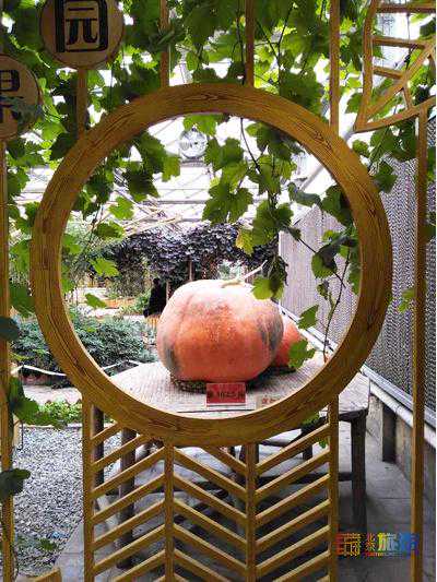 蔬菜瓜果园内入口处摆放的“巨人南瓜”