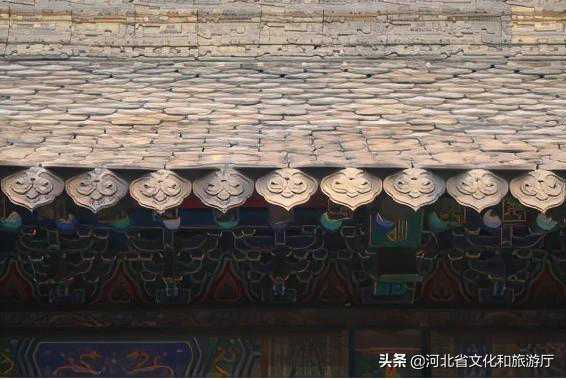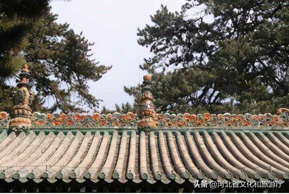 普乐寺建于1766年,其主殿宗印殿殿顶正脊中设黄琉璃佛塔一座,两侧由八条行龙驼佛教法器——八宝:法轮、法螺、宝伞、白盖、莲花、宝瓶、鱼、盘长。它们象征给世人带来吉祥、幸福、护佑的圆满佛法如同轮子一样旋转不停,永不停息度化众生。
