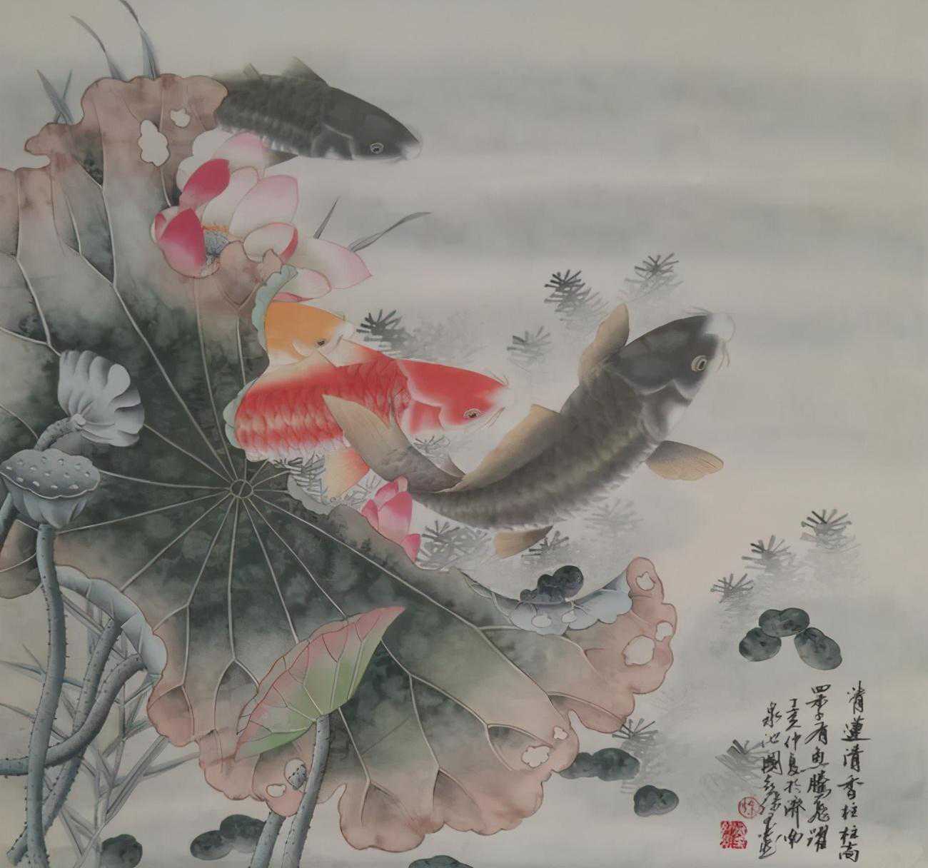 ▲徐墨然花鸟画《连年有鱼》