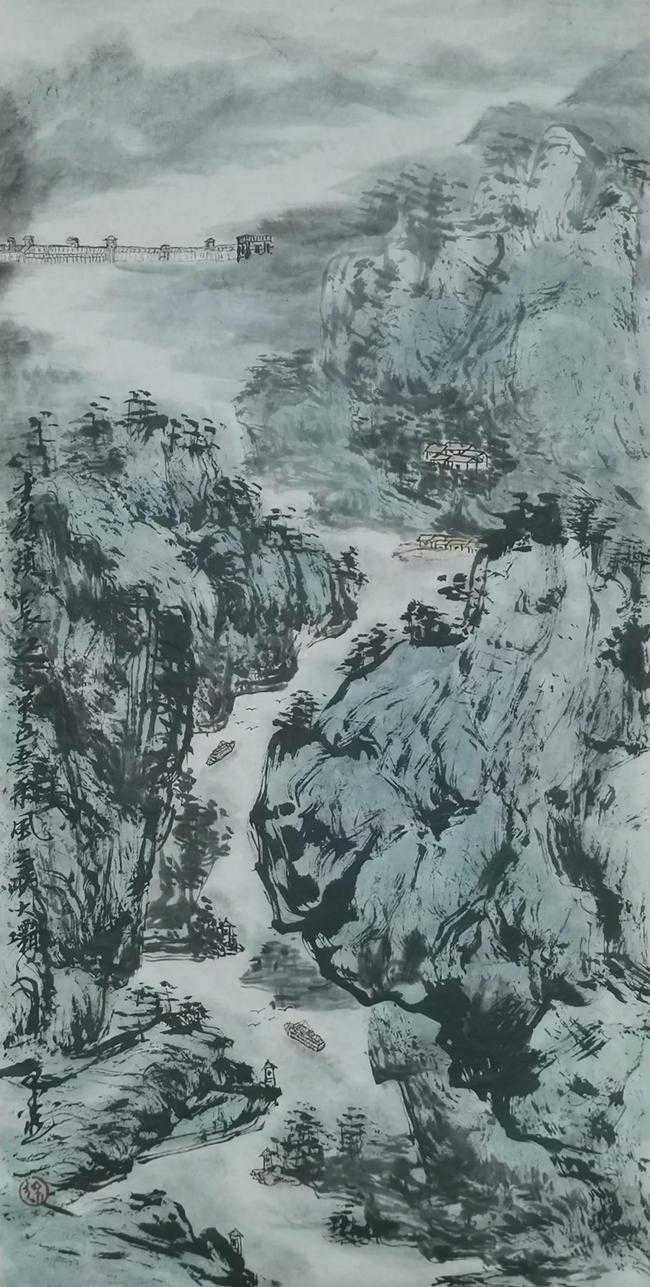▲徐墨然山水画《金龙锁长江》