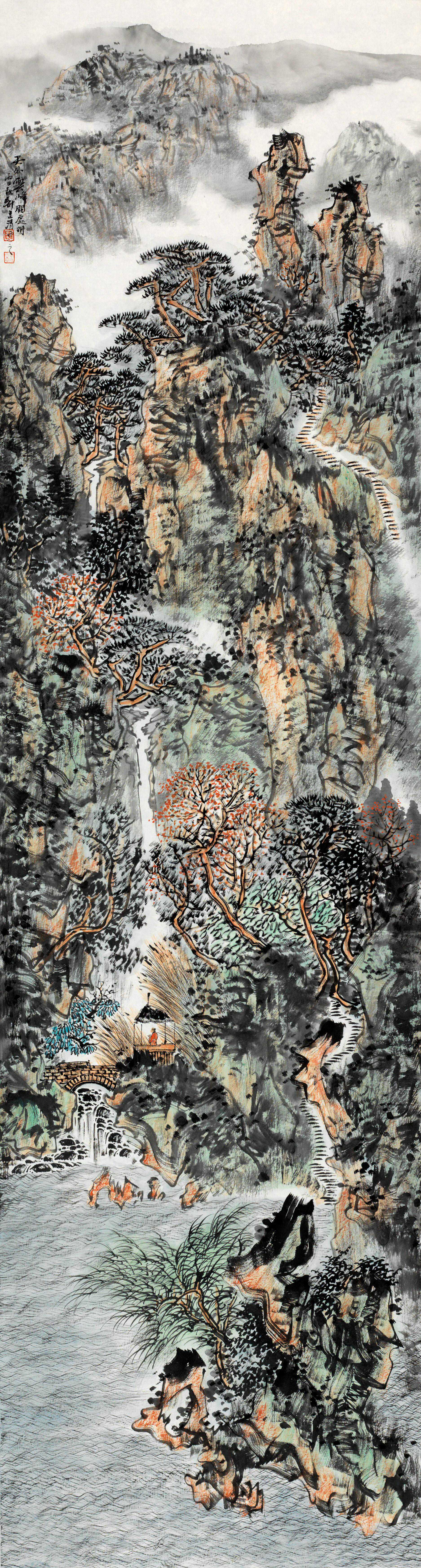 所以说计建清是在对古典笔墨的追寻和发展中逼近了现代,并在对山川自然的内在结构中建立起现代笔墨的“开合”空间秩序。[明]莫是龙说:“传神者必以形,形与心手相凑而相忘,神之所托也。”这正是计建清以笔墨的“内美静中参”让笔墨精神再度有了新的阐释。他在坚持笔墨精神的“浑厚华滋”中将现代中国山水画精神,发展成为了一种现代民族精神。计建清为中国画笔墨语言增添了发展的新的思路。