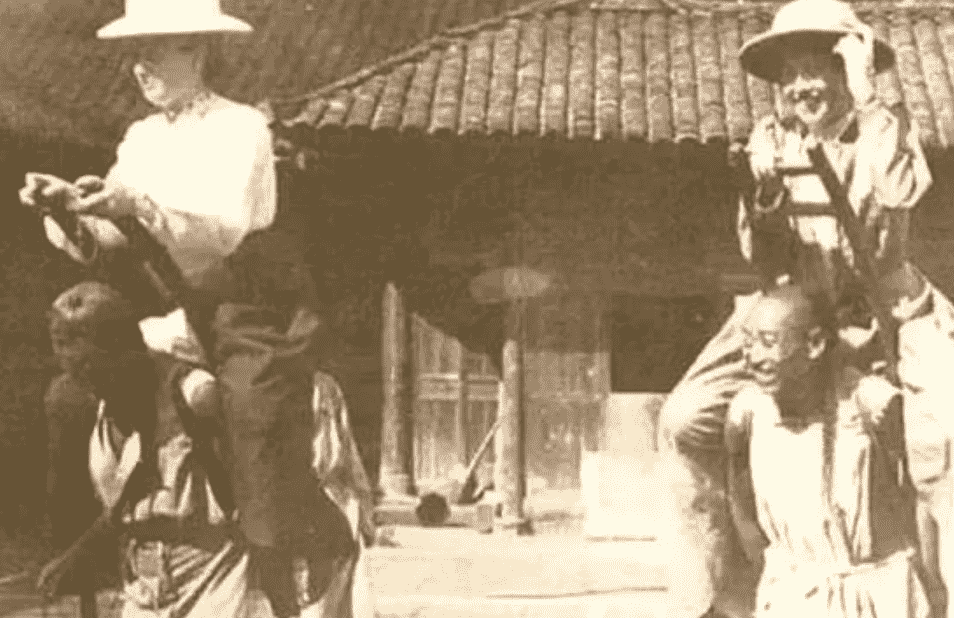 清朝驼夫,忍辱负重,背负异国女士,男尊女卑之念暂抛,生活所迫,几至颈项。
