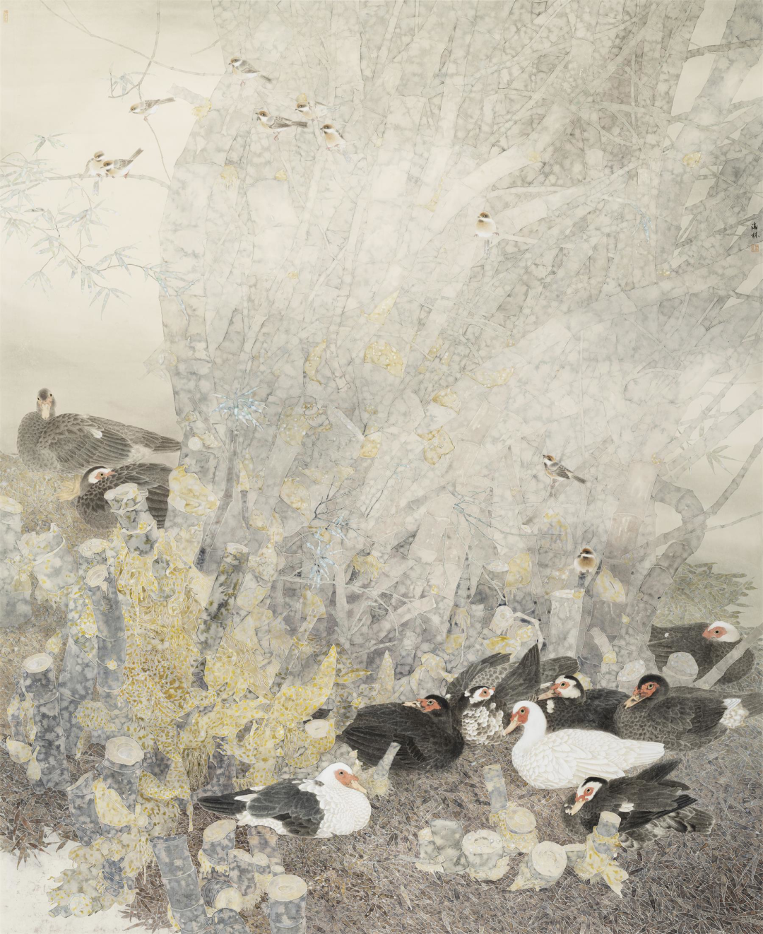 邓海林竹林集禽图240cm×200cm广东