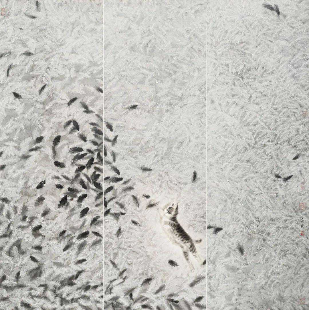 燕桦猫儿戏飞羽180cm×180cm福建
