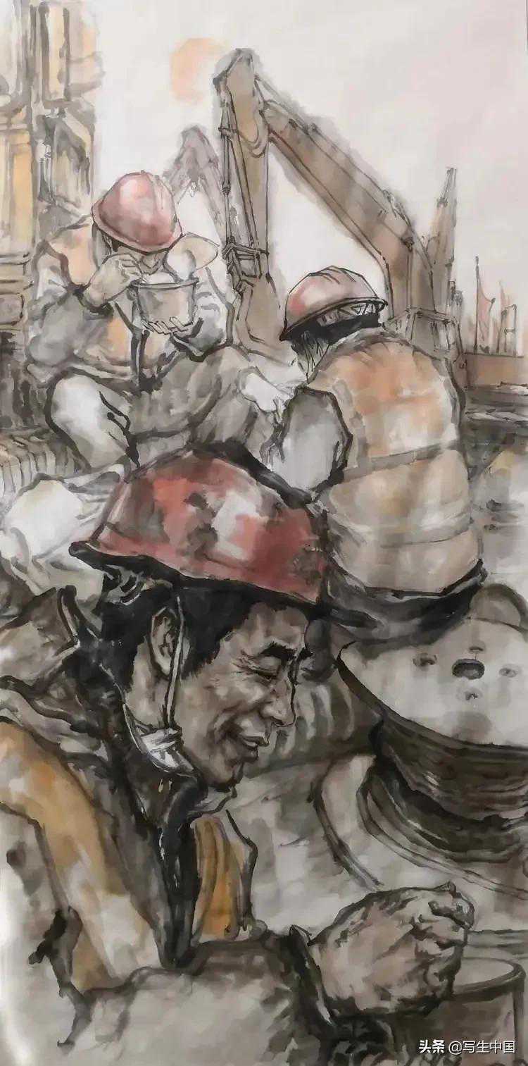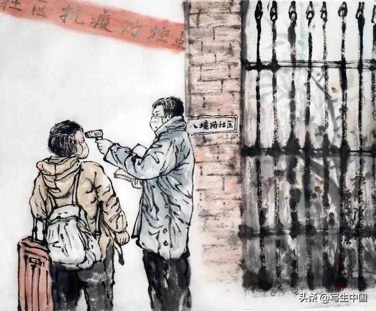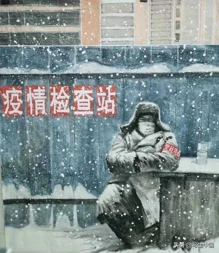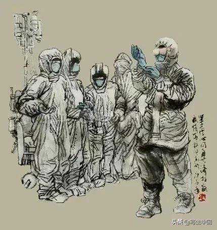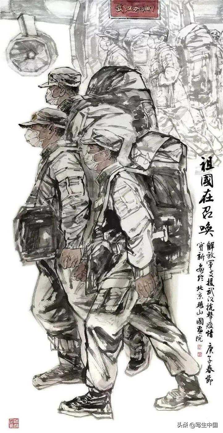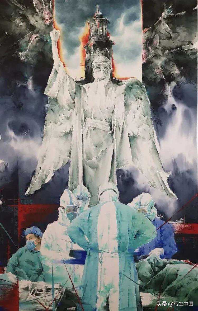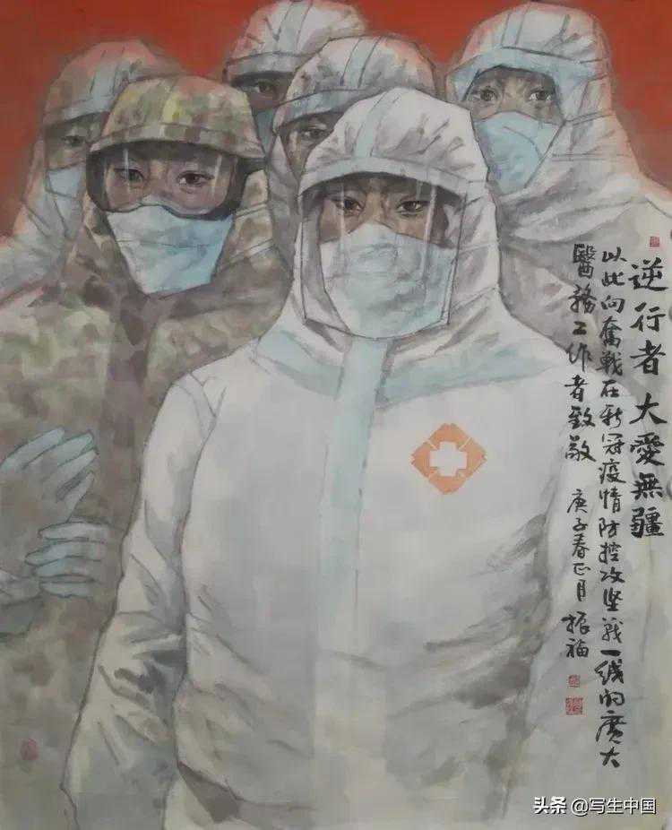 《拿画笔的抗疫战士》中国画蒋洪亮