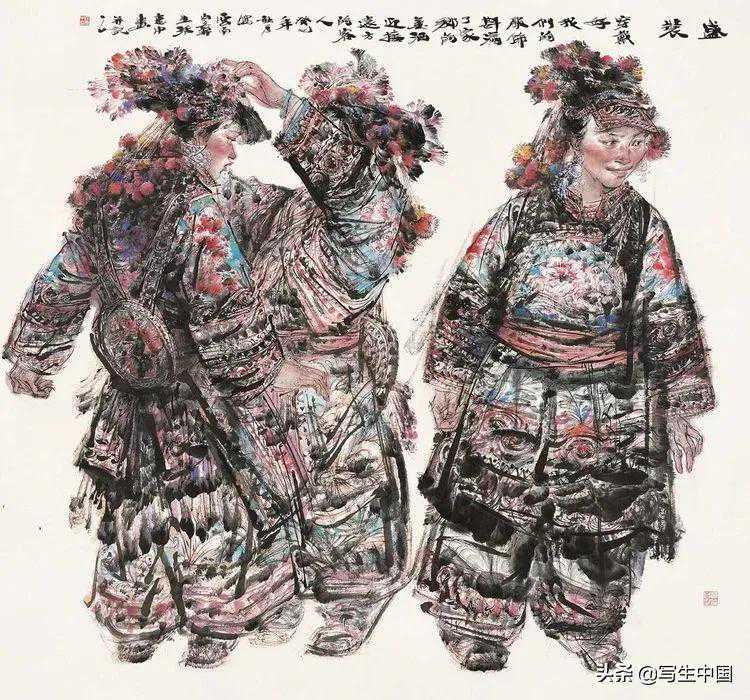 《淡妆浓抹迎朝阳》国画60x50cm叶晓秋
