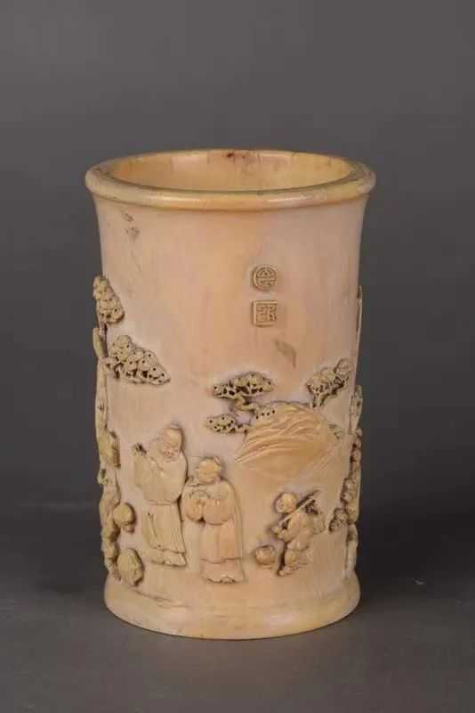 (清)象牙雕溪山行旅图笔筒,吴文化博物馆藏
