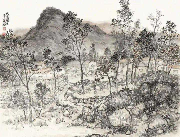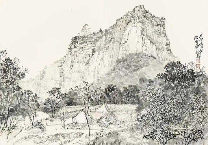 我写生收获最大的地方应该是太行山了。太行山写生是学生沈阳组织的,大概是因为南京牛首山建佛顶宫时,请我领衔作四大佛教名山的壁画,我就让当时在读的硕士研究生沈阳和刘晨韵具体绘制。沈阳画得更多,所以后来给的稿酬也更多。他当时执意不要,但我执意要给,学生毕竟执意不过老师。我想他大概是以组织大家写生的方式回报了,况且南太行在他的家乡河南,也算是尽一下地主之宜吧。我说这次收获最大,一方面是画的数量比较多(一天两幅水墨写生),另一方面这次写生使我后来的作品形式上有了很大的突破(详见画山水记)。