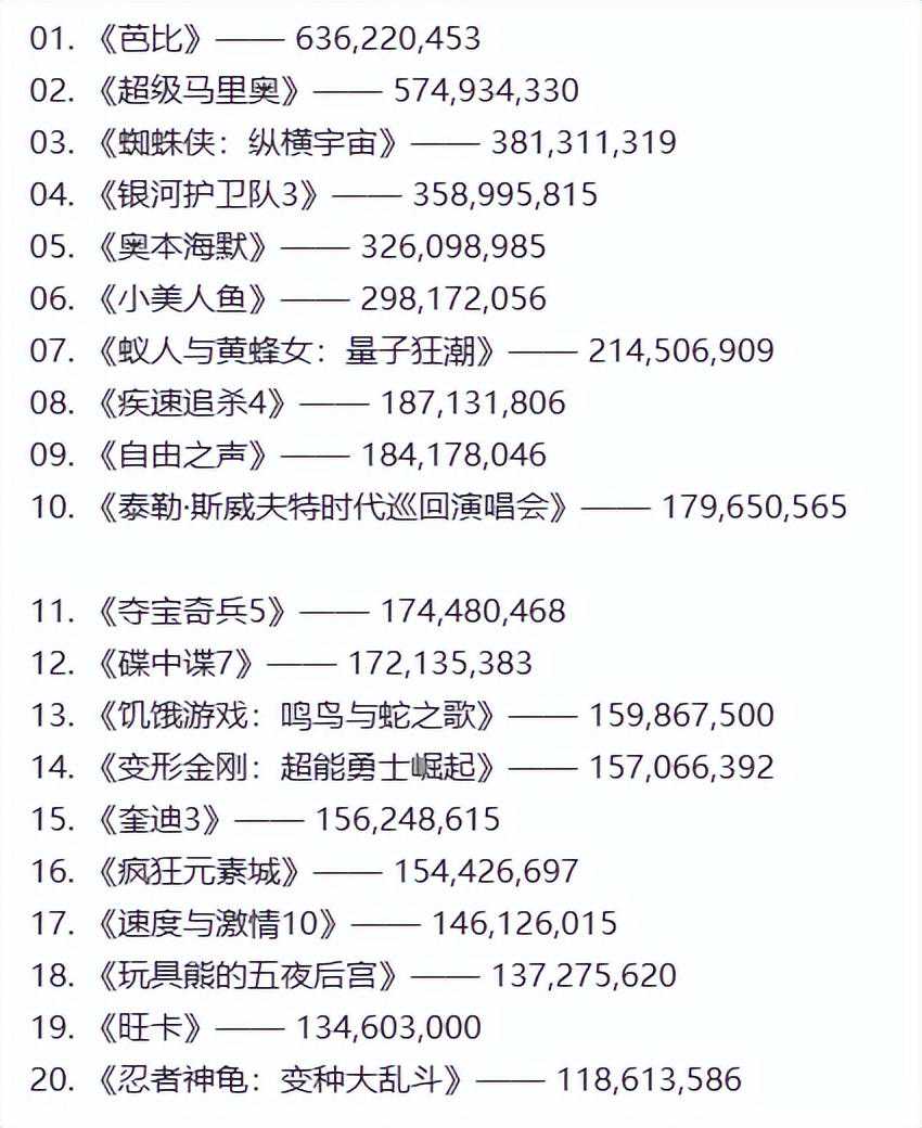 但你回看一下2023年的引进片,相当一部分都是知名IP的续作,这些作品的审美和影响力全都在下降。