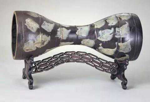腰鼓是由西域传入中原,历经两晋、南北朝、隋唐,不仅被吸收进唐乐,且又以陶瓷烧制鼓腔,别具特色。河南省的禹县、郏县、鲁山窑等在唐代均产花釉瓷,而以鲁山窑腰鼓最为有名。70年代,故宫博物院与河南省博物馆的文物工作人员根据唐代人南卓《羯鼓录》中有关“不是青州石末,即是鲁山花瓷”的记载,再次调查鲁山窑址,发现了黑釉斑点腰鼓残片,其特征与传世腰鼓完全一致。从而证实了这件黑釉花瓷腰鼓确系河南省鲁山窑制品。