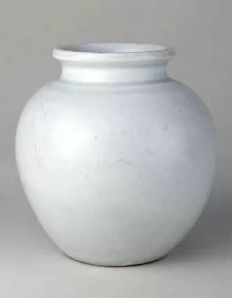 罐口微撇,短颈,圆腹,腹以下渐收,平底。底无釉。胎、釉洁白细腻。