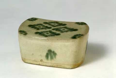 白釉绿彩枕
