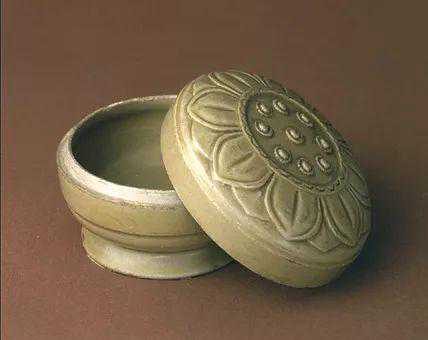 越窑青釉刻莲花纹盒