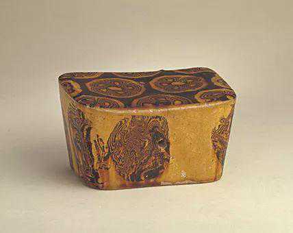 巩义窑绞胎枕,唐,高8cm,长12.5cm,宽8.8cm。