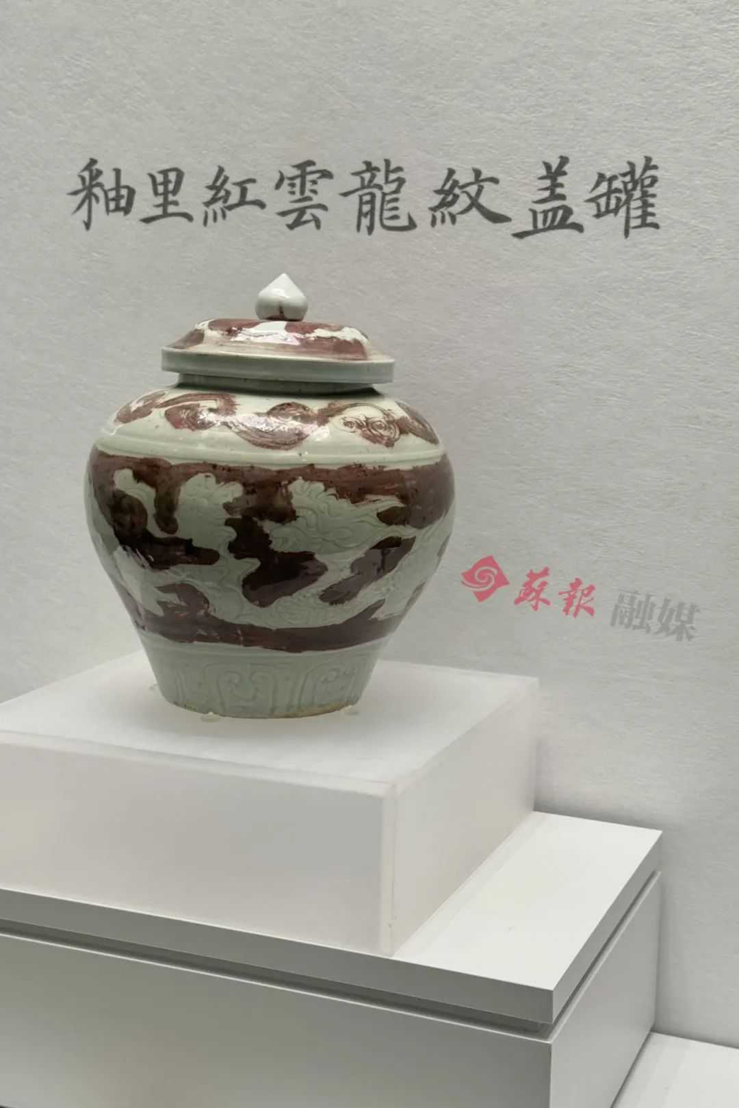 【元代·釉里红云龙纹盖罐】