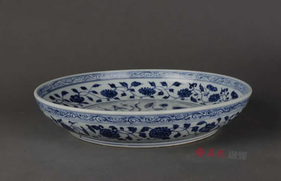 【明·青花束莲纹盘】