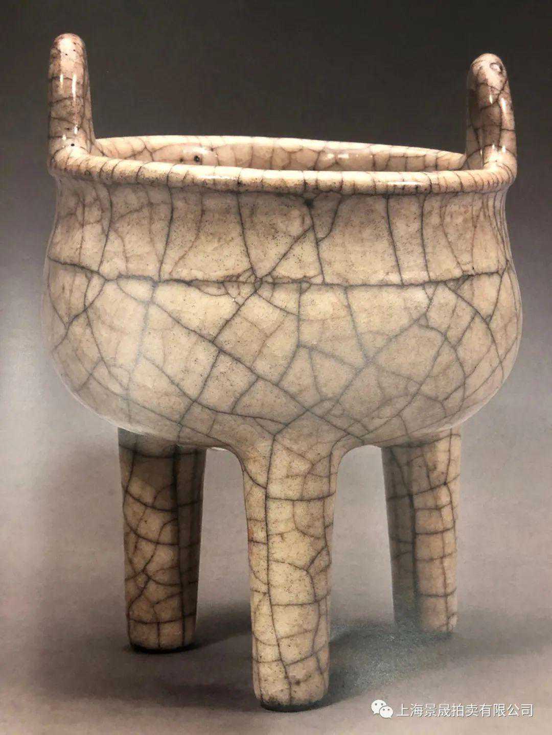 故宫博物院藏清宫书藏哥窑米黄釉双耳三足鼎式炉