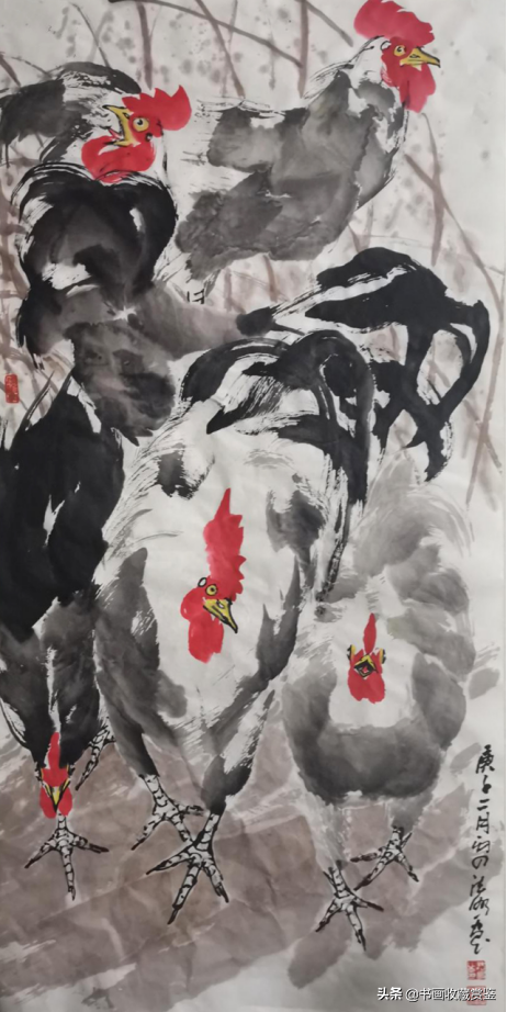 如果说法鹏先生笔下的鹤是“羽翼光明欺积雪,风神洒落占高秋”的话,那么法鹏先生笔下的雄鸡则是“一唱雄鸡天下白”。