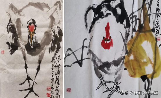 图左:《鹤》图右:《雄鸡》