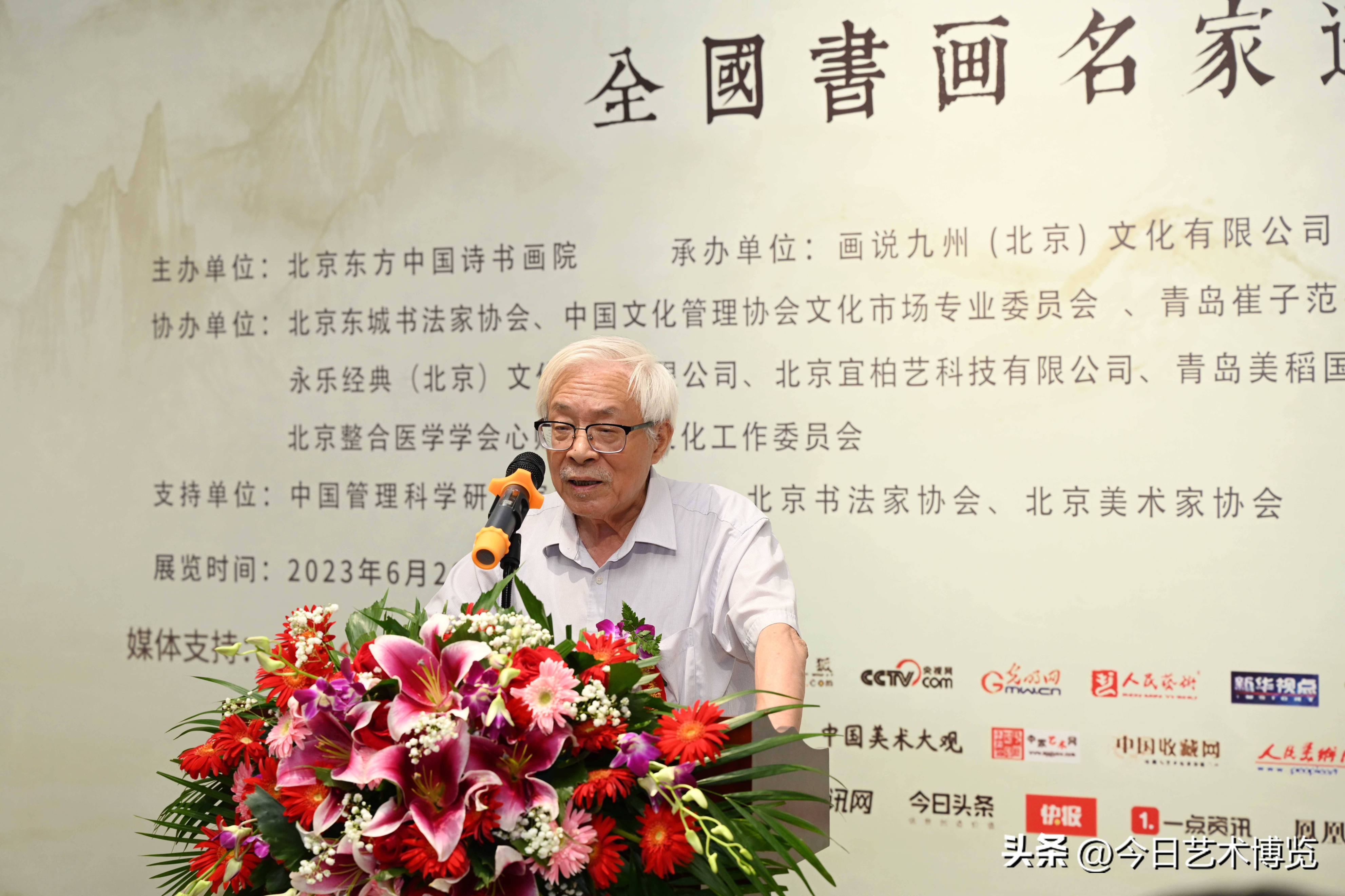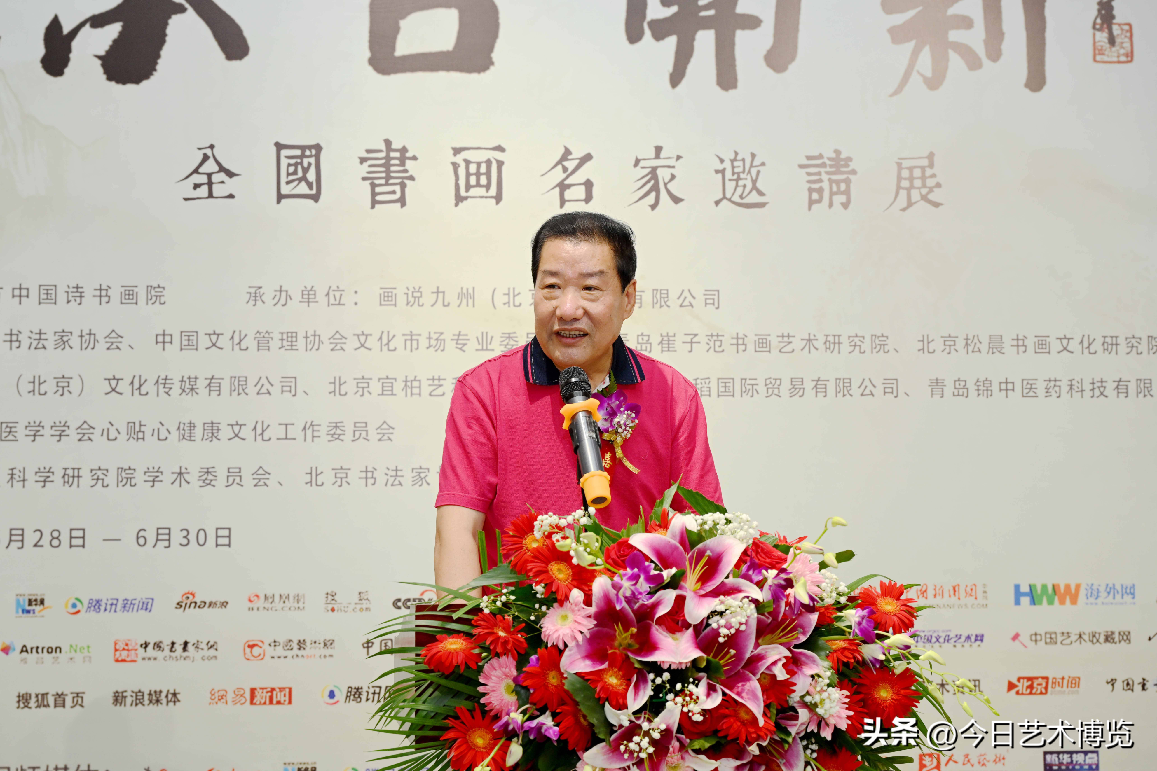 6月28日下午3时,由北京东方中国诗书画院主办;画说九州(北京)文化有限公司承办;北京松晨书画文化研究院、崔子范书画艺术研究院、北京宜柏艺科技有限公司、永乐经典(北京)文化传媒有限公司、青岛美稻国际贸易有限公司、青岛锦中医药科技有限公司协办的“承古开新·全国书画名家邀请展”在北京炎黄艺术馆盛大开幕。开幕式由中国书法家协会理事、北京书法家协会副主席田伯平主持。