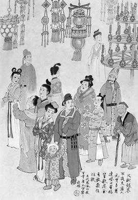 同时,一个灯市在府城隍庙和科甲巷各街举行,真是“万烛照人笙管沸,当头明月有谁看?”许多男人也借机上街看那些穿着鲜亮的女人,一首词讥讽道: