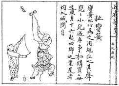 扯响簧是过去春节儿童最喜欢的玩具之一,直到20世纪60年代仍然十分流行,可惜今天一般只有杂技演员用作表演了。据《成都通览》:“响簧以竹为之,用绳扯之,其声甕甕。小儿过年,争相购买。每逢腊月十六日起,四乡之业是者,均入城开售。”这里也说明此类物品,大多由乡村农户制作,然后入城销售,从一个侧面反映了城乡的依赖关系。