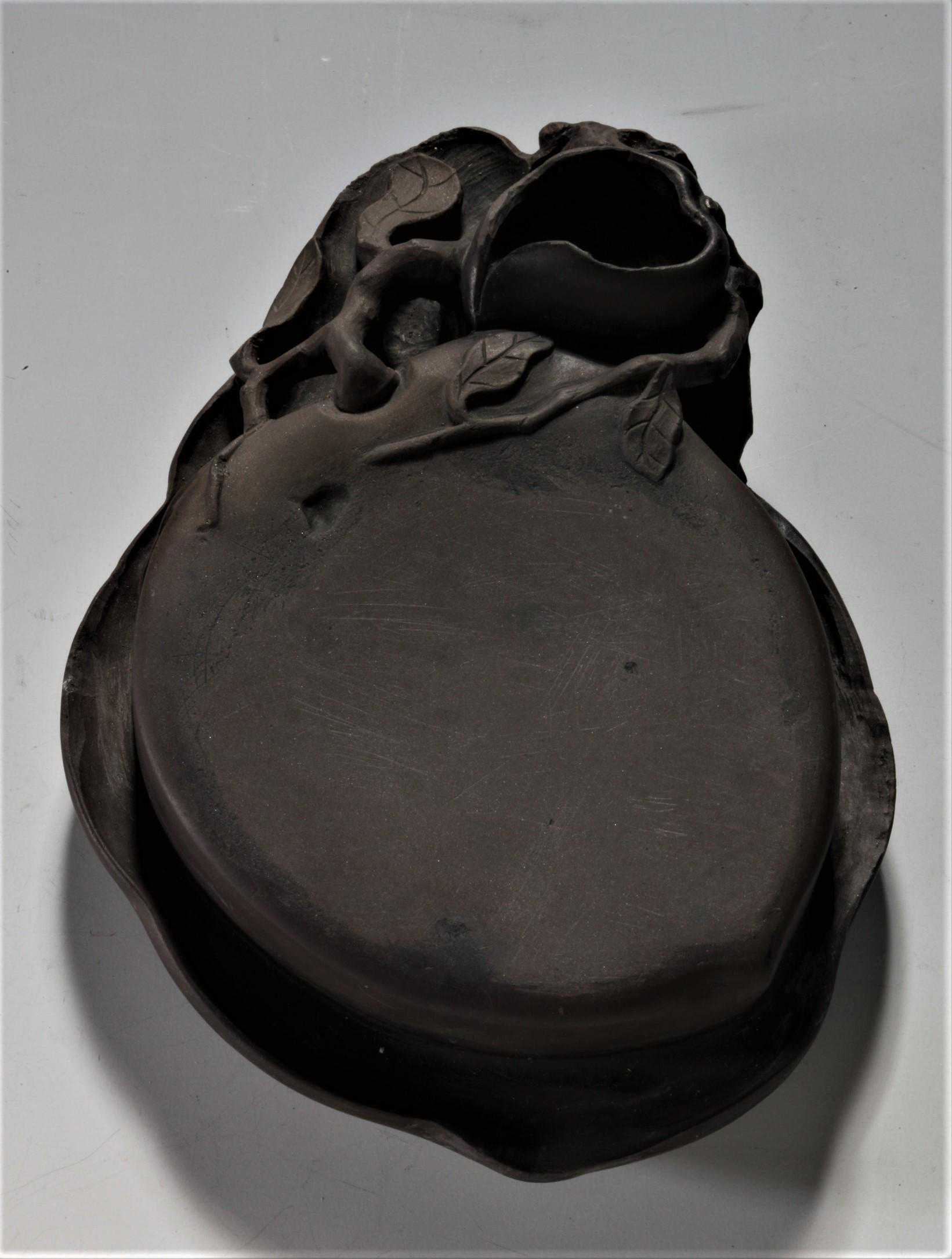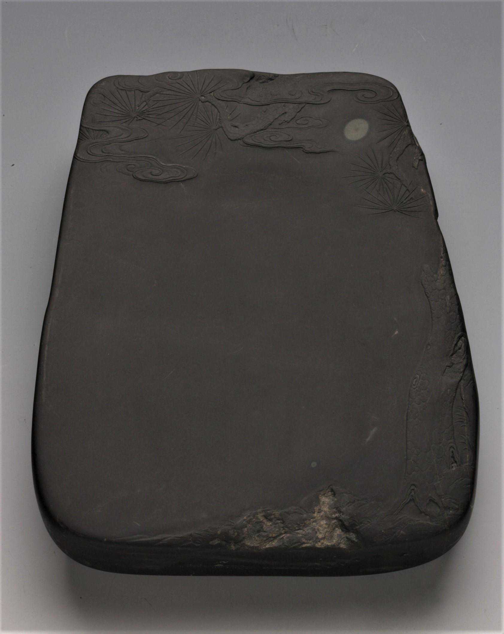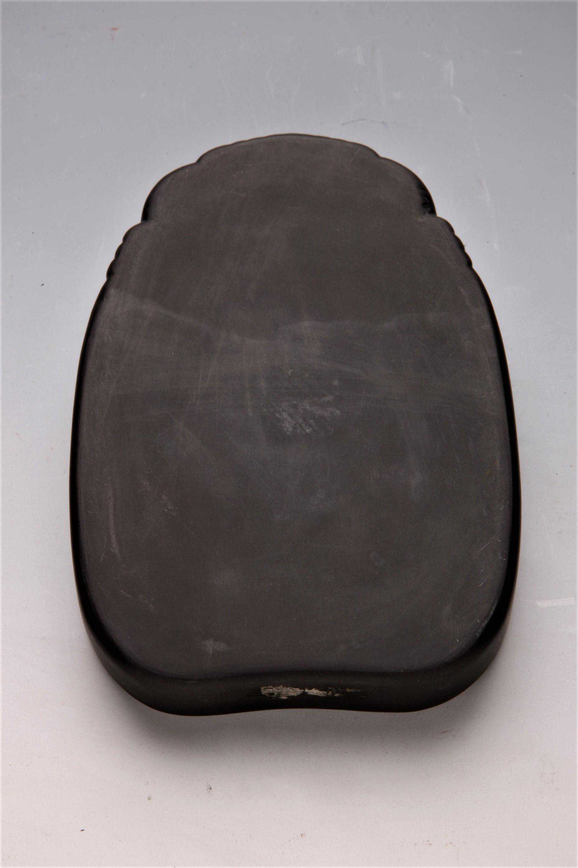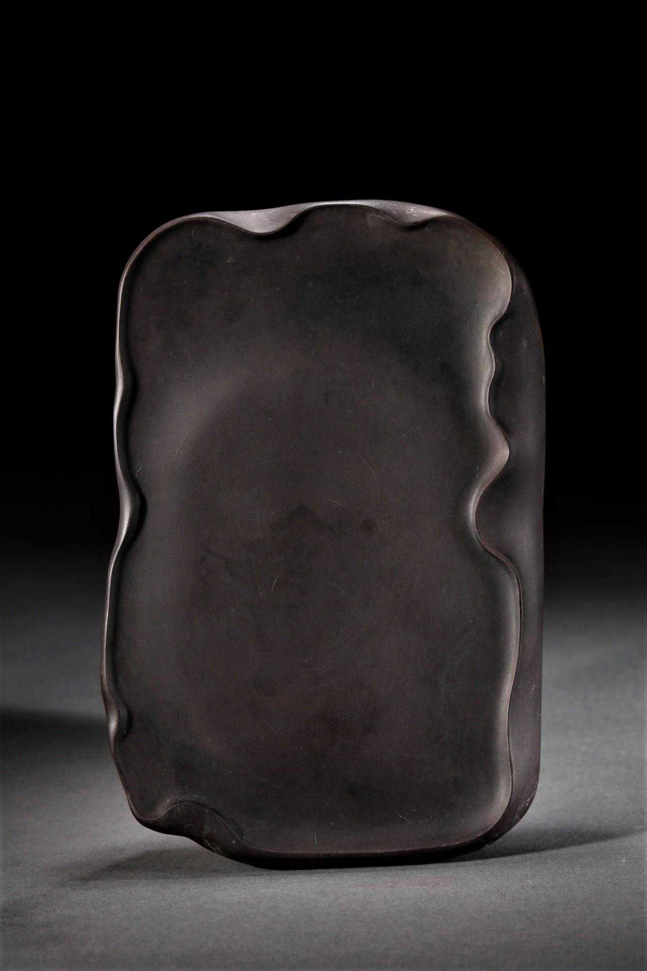 尺寸:长12cm宽15.5cm厚1.7cm老坑石。砚背过额雕饰荷花、荷叶。此砚石质石色石品皆优,或为“张坑石”。