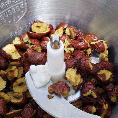 3、红枣、生姜放入干净的锅中小火翻炒两分钟,要一直翻炒,防止糊锅