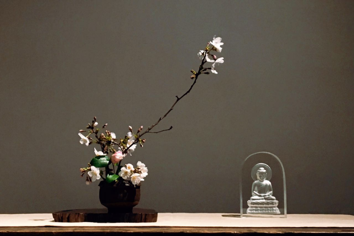 窗边案角陈列着颇具日本枯山水禅意的花艺作品,新绿嫩芽柳枝与敦朴陶瓷花瓶不经意的搭配,却营造出空旷寥廓的意境。