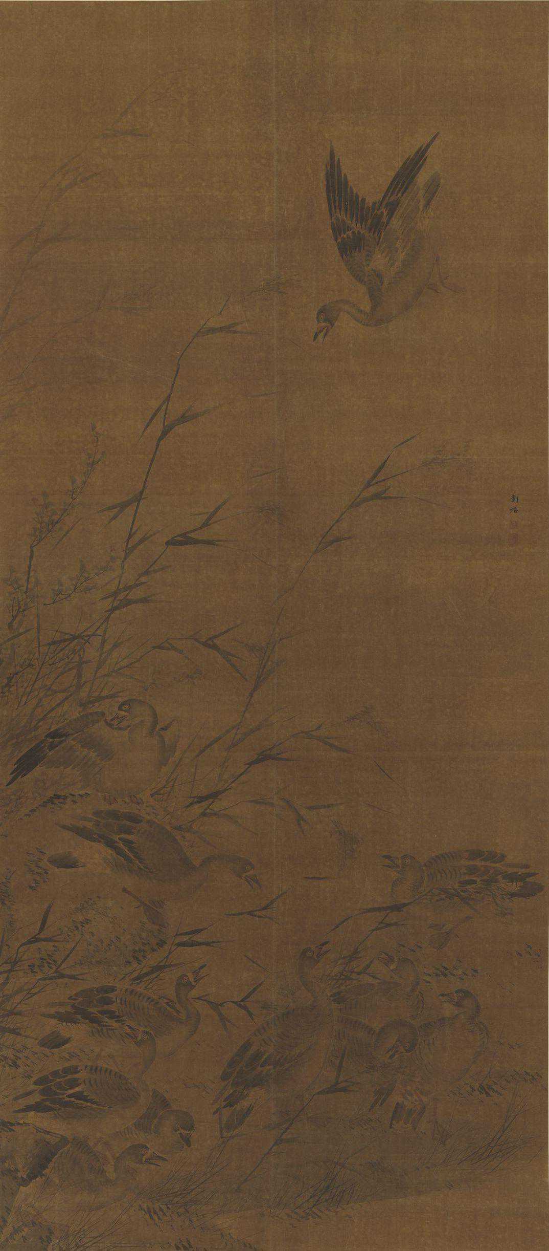 (传)宋崔白芦汀宿雁轴(局部)台北故宫博物院藏