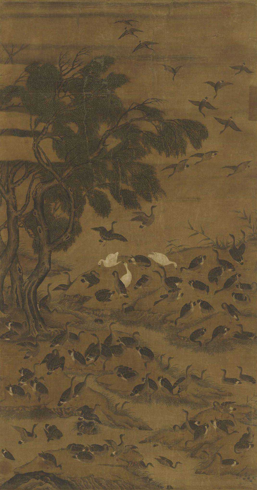 元人画百雁图轴(局部)台北故宫博物院藏