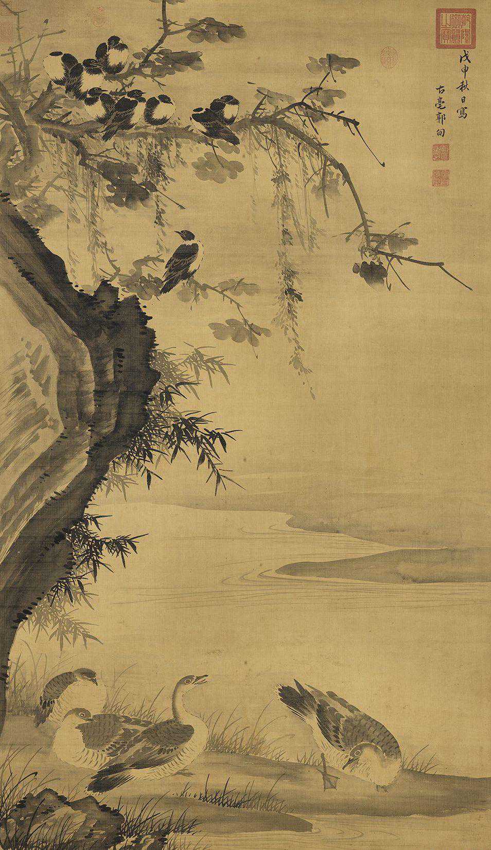 明吕纪秋渚水禽轴