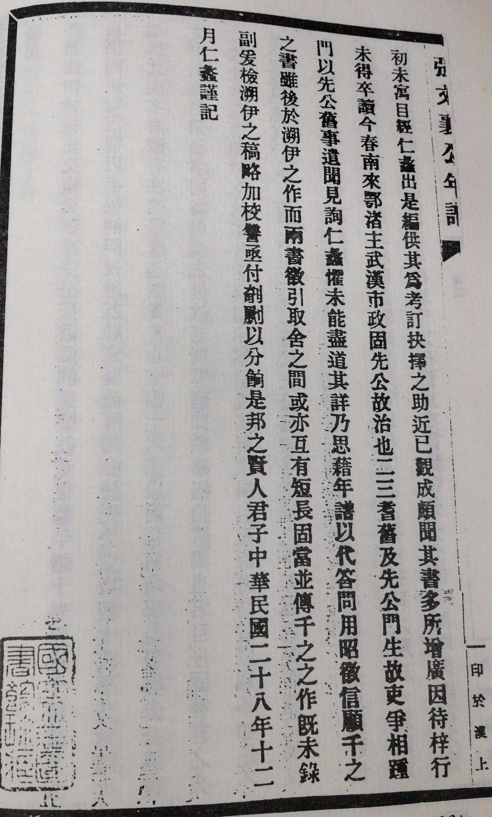 张仁蠡为1939武汉铅印版《张文襄公年谱》所作“后记”