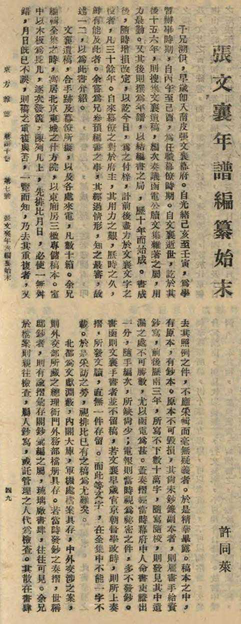 许同莱:《张文襄年谱编纂始末》,《东方杂志》第40卷第7号,1944年